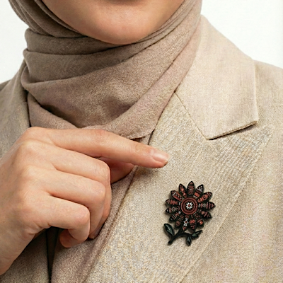 Inspired by the shape of the famous wild Nuwayr flower, and detailed with traditional Sadu patterns